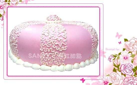 這個結婚蛋糕是我目前花最多時間完成的蛋糕~ 從蓋翻糖、等翻糖稍乾定型、打草稿、在蛋糕畫上花圖騰、串珍珠圍邊... 前前後後花快5天才完成... 眼睛都快脫窗了~ 不過完成後很有成就感 我很喜歡這結婚蛋糕的fu~~~