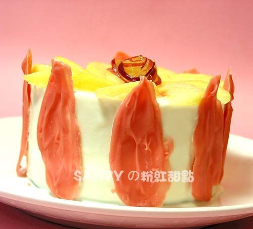 我很喜歡這款蛋糕的造型 顏色搭配對比很亮眼~ 至於這蛋糕的做法 我只能說這是個很有心機的蛋糕~ 明明是個圓弧狀蛋糕 硬是要抹成直角 讓人猜不透到底是什麼形狀... 心機很重哦! 做法: