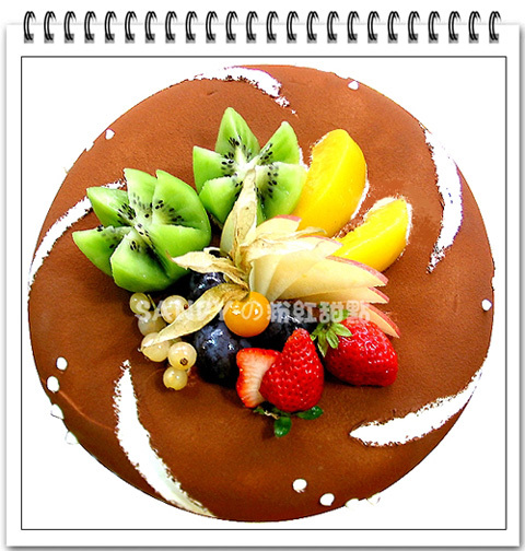 做法 : 1. 將蛋糕抹成圓弧且拋光2. 將整個蛋糕噴滿薄薄一層防潮可可粉 要來回不要定點噴 會較均勻